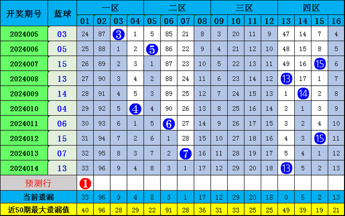上期蓝球中奖号码为13,近10期蓝球概述奇偶比7:3,奇偶数出号奇数占优,本期推选奇数:01