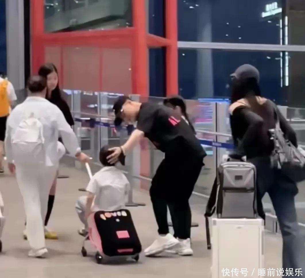 汪峰这回但是把“超等奶爸”的时势拉满了,一边看管着俩妮儿,一边还得盯着坐在行李车上的5岁小男儿。小家伙在上头扬扬自得的,萌萌的神情十分招东谈主可爱,由保姆拉着走,活脱脱像个小少爷。